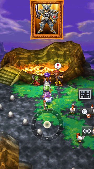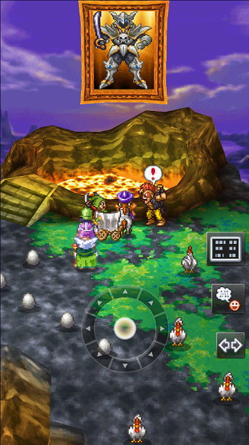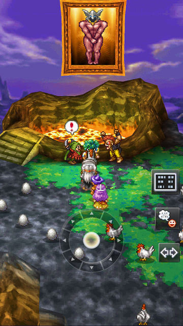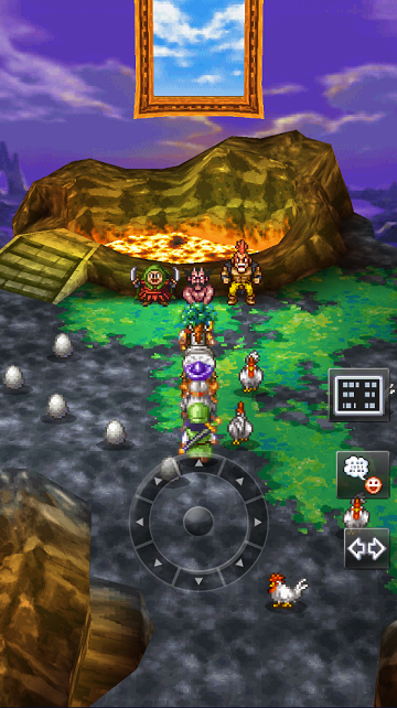 これがメチャメチャ強く、最初は全滅しました。攻略としてはエッグラ(左)から順番に倒す方がいいです。エッグラは炎や吹雪のブレスを使ってくるのでミネアのフバーハは重宝されます。クリフトのスクルト、ブライのバキルトやルカニが有効な対策になります。いてつく波動で呪文を無効化されますが、めげずに何度でもかけてやります。エッグラを倒せば後はチキーラですが、チキーラはがんせきおとしやまわしげりなど武闘的な攻撃をしてきます。エッグラと二人でいる時は手強いですが一人になってしまえば多勢に無勢でさすがに勝てます。この勝負如何にエッグラを倒すかが勝利の鍵となります。