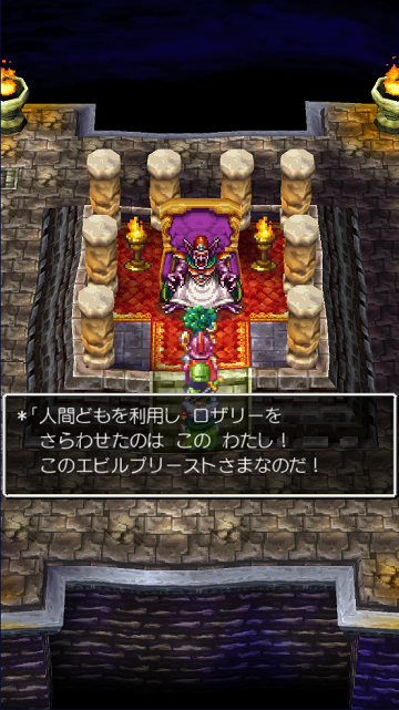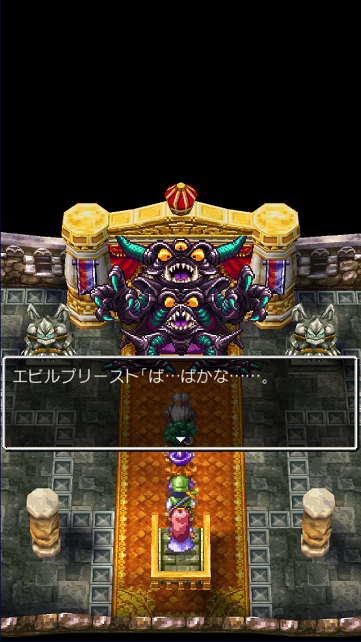 3戦目はエビルプリーストです。アリーナの代りにクリフトを入れスクルトとベホマでサポートすれば難無く勝てました。