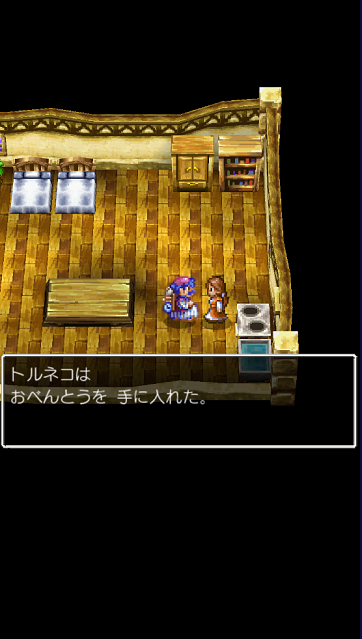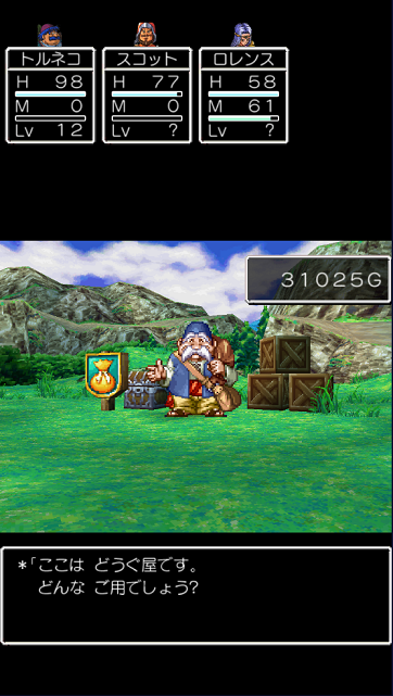 人々の話を聞いて情報を集めることにより進むべき道が明らかになります。またタンスや壺にはアイテムが隠れていることがありますので調べておきます。普通他人の家のタンスを調べるなんて非常識ですが、これはゲームでそういう仕様になっています。武器や防具は持っているだけでは意味がないので装備して下さい。最初の頃はHPが低く瀕死になりやすいので、必ず薬草はいくつか携帯してゲームを進めて下さい。