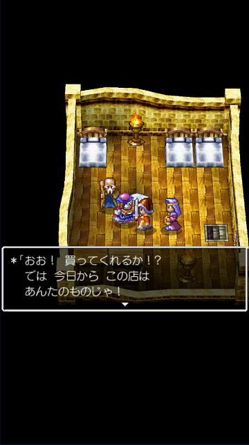 洞窟で銀の女神像を手に入れ売って25000ゴールドにし、足りない分は集めて35000ゴールドにし、遂に店を買い取ります。
