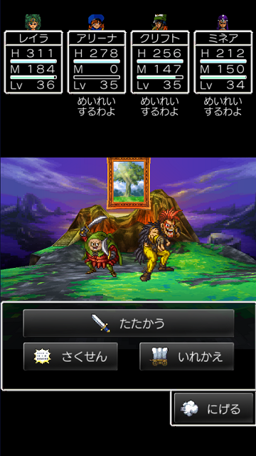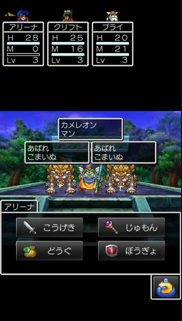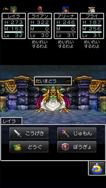 希望の祠から四つの結界を守る一人アンドレアルとの戦闘です。3体でてくるドラゴンで仲間も呼ぶので中々手強いですが、ブライのバイキルトで主人公、アリーナ、ライアンの攻撃力を上げて戦えば余裕でした。