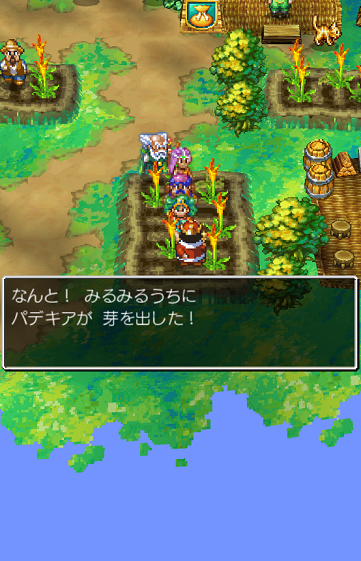 祭壇に聖なる種火を投げ込み明るく照らされたことを確認しコナンベリーに戻るとトルネコが仲間になって船で南の大陸のミントスへ向かいます。ミントスには商売の神様とも言われるヒルタン老人がいて、ホフマンがその心得を学びたいということでここでお別れします。また宿屋に行くと病に侵されたクリフトが病床に伏しており、その病を治すためアリーナがパデキア取りに行ったという情報を得ます。一緒に後を追うと言うことでブライが仲間に加わりました。南に向かうとソレッタという王様まで外で働いている村のような国があり、パデキアの根っこは南の洞窟にあるということを聞きました。